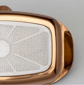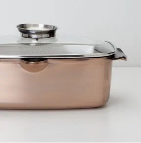 Premium die-cast aluminum pans with a revolutionary metallic exterior coating