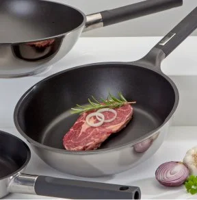 Excellent non-stick performance based on PTFE, comparable to titanium plasma coatings from the high-performance segment.