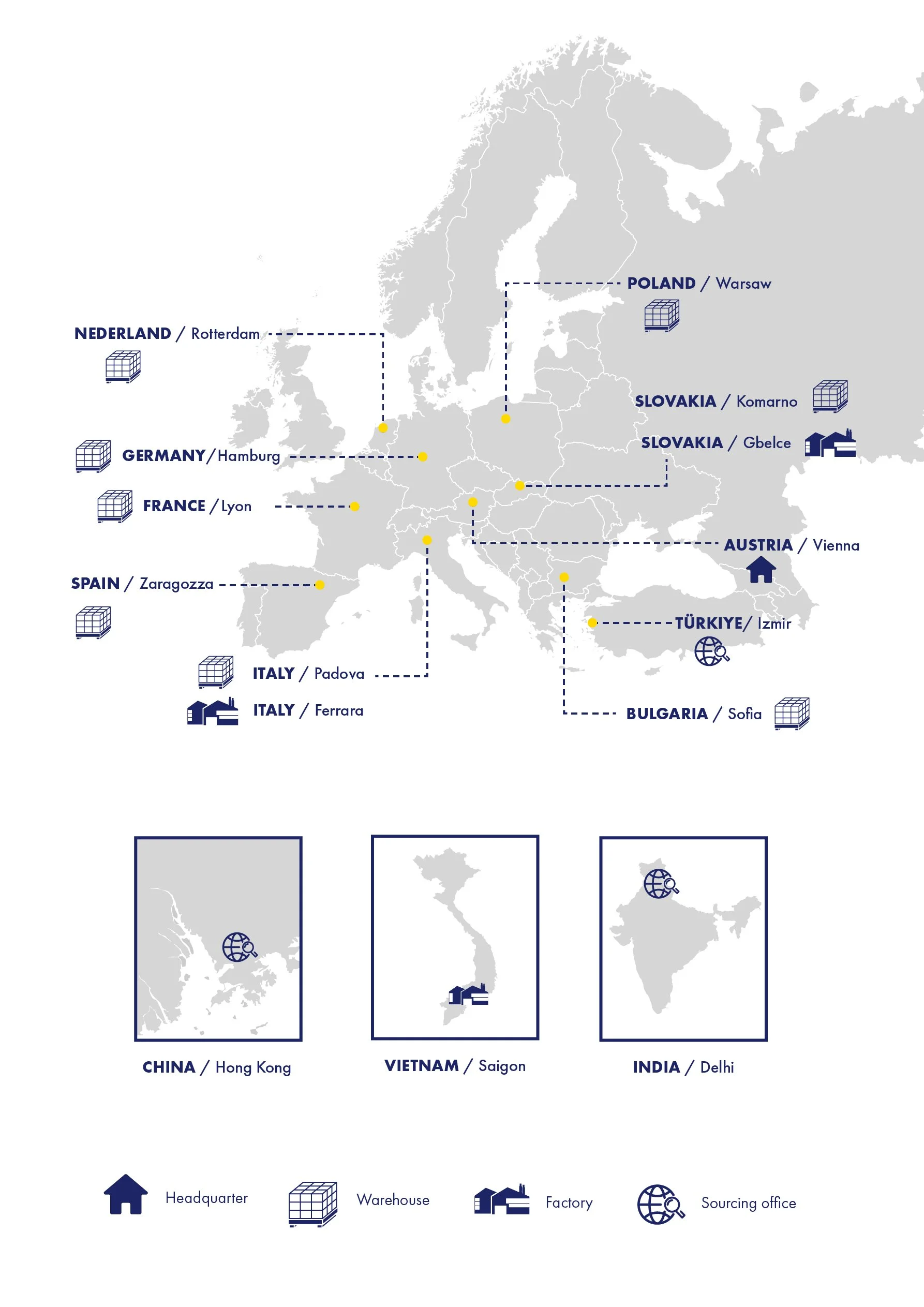 Casa Si operates internationally with production facilities, warehouses, and offices across Europe and beyond, including Germany, Italy, Austria, Slovakia, France, Spain, Poland, Türkiye, China, Vietnam, and India.